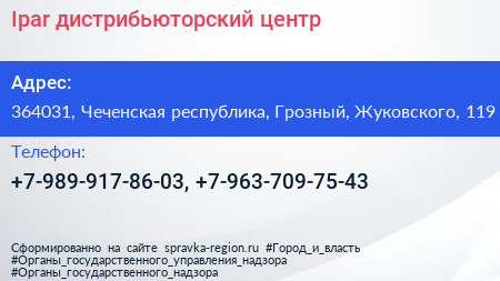 Ipar, дистрибьюторский центр по адресу 364031, Чеченская республика, Грозный, Жуковского, 119 в дальнейшем Организация, размещена в следующих категориях: