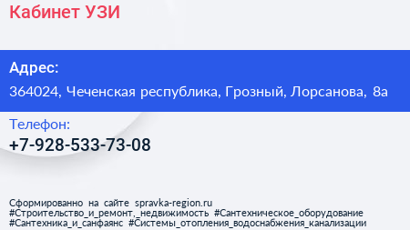 Кабинет УЗИ по адресу 364024, Чеченская республика, Грозный, Лорсанова, 8а в дальнейшем Организация, размещена в следующих категориях: