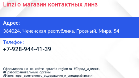 Linzi.o, магазин контактных линз по адресу 364024, Чеченская республика, Грозный, Мира, 54 в дальнейшем Организация, размещена в следующих категориях: