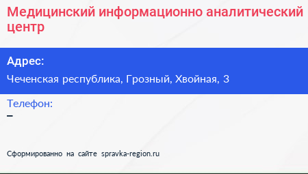 Медицинский информационно-аналитический центр по адресу Чеченская республика, Грозный, Хвойная, 3 в дальнейшем Организация, размещена в следующих категориях: