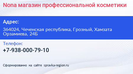 Nona, магазин профессиональной косметики по адресу 364024, Чеченская республика, Грозный, Хамзата Орзамиева, 24Б в дальнейшем Организация, размещена в следующих категориях: