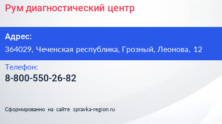 Рум, диагностический центр по адресу 364029, Чеченская республика, Грозный, Леонова, 12 в дальнейшем Организация, размещена в следующих категориях: