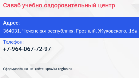 Саваб, учебно-оздоровительный центр по адресу 364031, Чеченская республика, Грозный, Жуковского, 16а в дальнейшем Организация, размещена в следующих категориях: