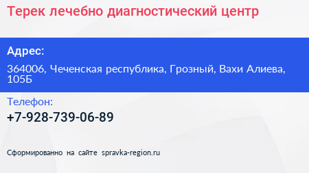 Терек, лечебно-диагностический центр по адресу 364006, Чеченская республика, Грозный, Вахи Алиева, 105Б в дальнейшем Организация, размещена в следующих категориях:
