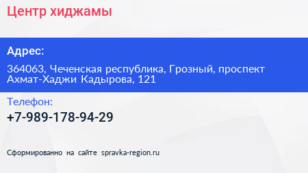 Центр хиджамы по адресу 364063, Чеченская республика, Грозный, проспект Ахмат-Хаджи Кадырова, 121 в дальнейшем Организация, размещена в следующих категориях: