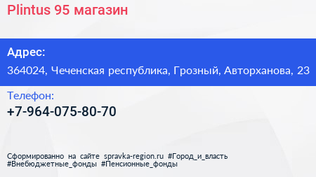 Plintus 95, магазин по адресу 364024, Чеченская республика, Грозный, Авторханова, 23 в дальнейшем Организация, размещена в следующих категориях:
