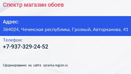 Спектр, магазин обоев по адресу 364024, Чеченская республика, Грозный, Авторханова, 41 в дальнейшем Организация, размещена в следующих категориях: