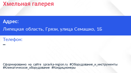 Хмельная галерея по адресу Липецкая область, Грязи, улица Семашко, 1Б в дальнейшем Организация, размещена в следующих категориях: