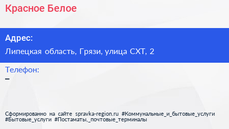 Красное & Белое по адресу Липецкая область, Грязи, улица СХТ, 2 в дальнейшем Организация, размещена в следующих категориях: