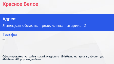 Красное & Белое по адресу Липецкая область, Грязи, улица Гагарина, 2 в дальнейшем Организация, размещена в следующих категориях: