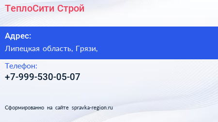ТеплоСити-Строй по адресу Липецкая область, Грязи, в дальнейшем Организация, размещена в следующих категориях: