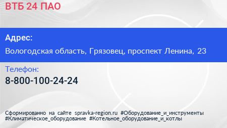 ВТБ 24, ПАО по адресу Вологодская область, Грязовец, проспект Ленина, 23 в дальнейшем Организация, размещена в следующих категориях:
