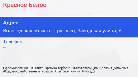 Красное & Белое по адресу Вологодская область, Грязовец, Заводская улица, 6 в дальнейшем Организация, размещена в следующих категориях: