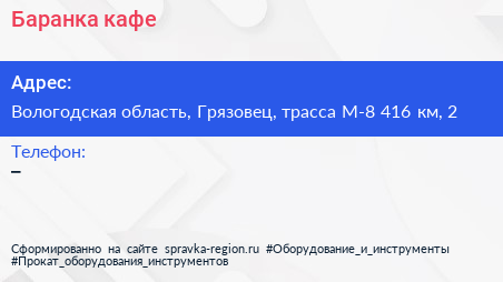 Баранка, кафе по адресу Вологодская область, Грязовец, трасса М-8 416 км, 2 в дальнейшем Организация, размещена в следующих категориях: