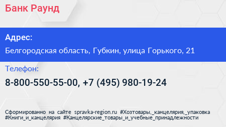 Банк Раунд по адресу Белгородская область, Губкин, улица Горького, 21 в дальнейшем Организация, размещена в следующих категориях: