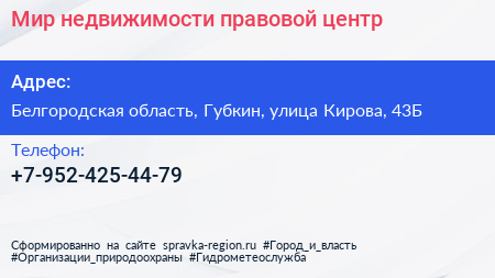 Мир недвижимости, правовой центр по адресу Белгородская область, Губкин, улица Кирова, 43Б в дальнейшем Организация, размещена в следующих категориях: