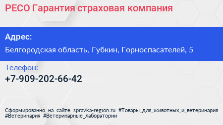 РЕСО-Гарантия, страховая компания по адресу Белгородская область, Губкин, Горноспасателей, 5 в дальнейшем Организация, размещена в следующих категориях: