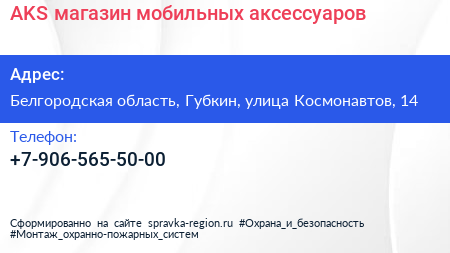 AKS, магазин мобильных аксессуаров по адресу Белгородская область, Губкин, улица Космонавтов, 14 в дальнейшем Организация, размещена в следующих категориях: