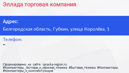Эллада, торговая компания по адресу Белгородская область, Губкин, улица Королёва, 1 в дальнейшем Организация, размещена в следующих категориях: