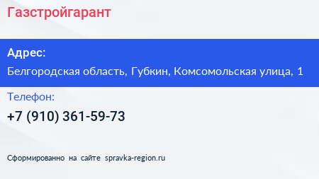 Газстройгарант по адресу Белгородская область, Губкин, Комсомольская улица, 1 в дальнейшем Организация, размещена в следующих категориях:
