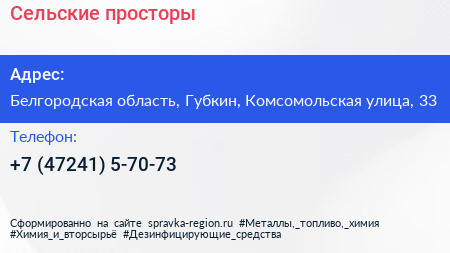 Сельские просторы по адресу Белгородская область, Губкин, Комсомольская улица, 33 в дальнейшем Организация, размещена в следующих категориях:
