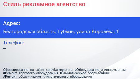 Стиль, рекламное агентство по адресу Белгородская область, Губкин, улица Королёва, 1 в дальнейшем Организация, размещена в следующих категориях: