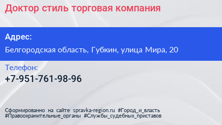 Доктор стиль, торговая компания по адресу Белгородская область, Губкин, улица Мира, 20 в дальнейшем Организация, размещена в следующих категориях: