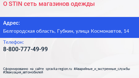 O`STIN, сеть магазинов одежды по адресу Белгородская область, Губкин, улица Космонавтов, 14 в дальнейшем Организация, размещена в следующих категориях: