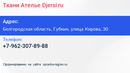 Ткани & Ателье - Djersi.ru по адресу Белгородская область, Губкин, улица Кирова, 30 в дальнейшем Организация, размещена в следующих категориях: