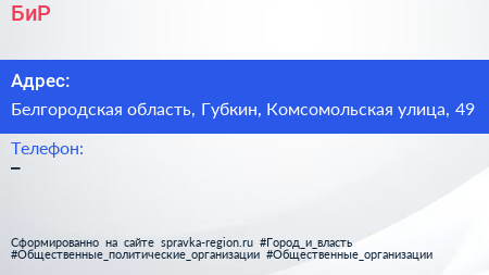 БиР по адресу Белгородская область, Губкин, Комсомольская улица, 49 в дальнейшем Организация, размещена в следующих категориях: