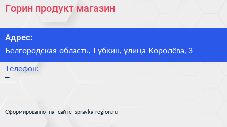 Горин продукт, магазин по адресу Белгородская область, Губкин, улица Королёва, 3 в дальнейшем Организация, размещена в следующих категориях: