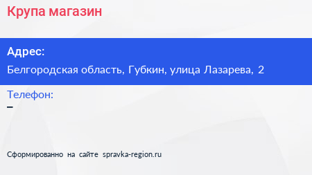 Крупа, магазин по адресу Белгородская область, Губкин, улица Лазарева, 2 в дальнейшем Организация, размещена в следующих категориях: