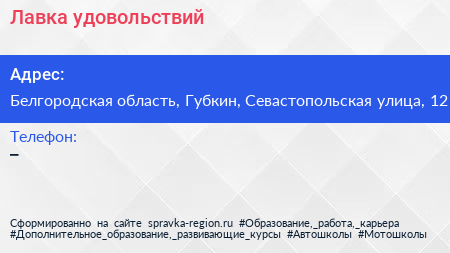 Лавка удовольствий по адресу Белгородская область, Губкин, Севастопольская улица, 12 в дальнейшем Организация, размещена в следующих категориях: