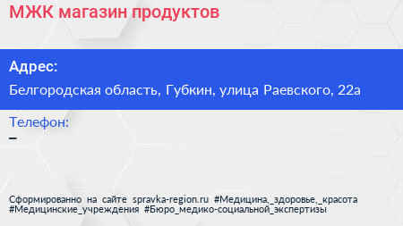 МЖК, магазин продуктов по адресу Белгородская область, Губкин, улица Раевского, 22а в дальнейшем Организация, размещена в следующих категориях: