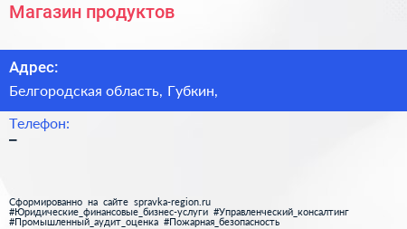 Магазин продуктов по адресу Белгородская область, Губкин, в дальнейшем Организация, размещена в следующих категориях: