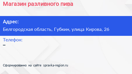 Магазин разливного пива по адресу Белгородская область, Губкин, улица Кирова, 26 в дальнейшем Организация, размещена в следующих категориях: