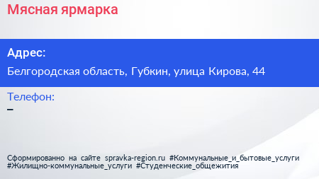 Мясная ярмарка по адресу Белгородская область, Губкин, улица Кирова, 44 в дальнейшем Организация, размещена в следующих категориях: