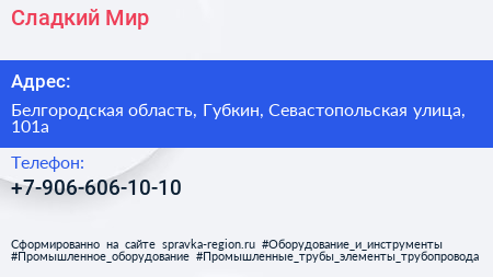 Сладкий Мир по адресу Белгородская область, Губкин, Севастопольская улица, 101а в дальнейшем Организация, размещена в следующих категориях: