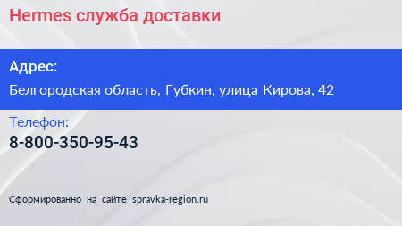Hermes, служба доставки по адресу Белгородская область, Губкин, улица Кирова, 42 в дальнейшем Организация, размещена в следующих категориях: