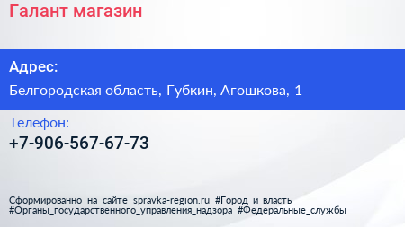 Галант, магазин по адресу Белгородская область, Губкин, Агошкова, 1 в дальнейшем Организация, размещена в следующих категориях: