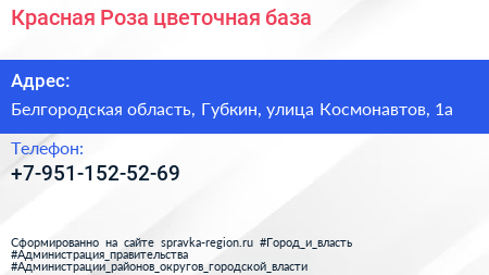 Красная Роза, цветочная база по адресу Белгородская область, Губкин, улица Космонавтов, 1а в дальнейшем Организация, размещена в следующих категориях: