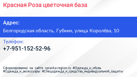 Красная Роза, цветочная база по адресу Белгородская область, Губкин, улица Королёва, 10 в дальнейшем Организация, размещена в следующих категориях: