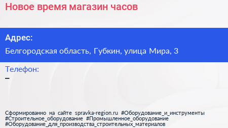 Новое время, магазин часов по адресу Белгородская область, Губкин, улица Мира, 3 в дальнейшем Организация, размещена в следующих категориях: