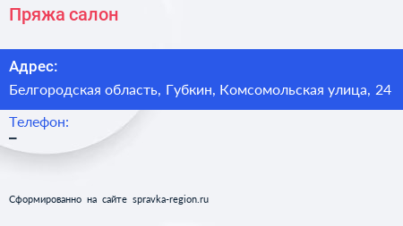 Пряжа, салон по адресу Белгородская область, Губкин, Комсомольская улица, 24 в дальнейшем Организация, размещена в следующих категориях: