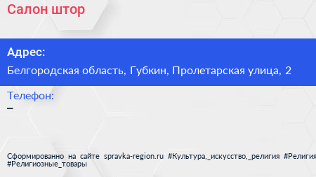 Салон штор по адресу Белгородская область, Губкин, Пролетарская улица, 2 в дальнейшем Организация, размещена в следующих категориях: