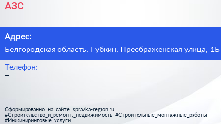 АЗС по адресу Белгородская область, Губкин, Преображенская улица, 1Б в дальнейшем Организация, размещена в следующих категориях: