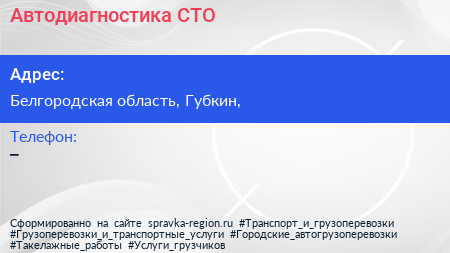 Автодиагностика, СТО по адресу Белгородская область, Губкин, в дальнейшем Организация, размещена в следующих категориях: