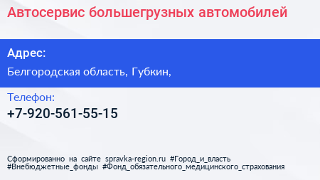 Автосервис большегрузных автомобилей по адресу Белгородская область, Губкин, в дальнейшем Организация, размещена в следующих категориях: