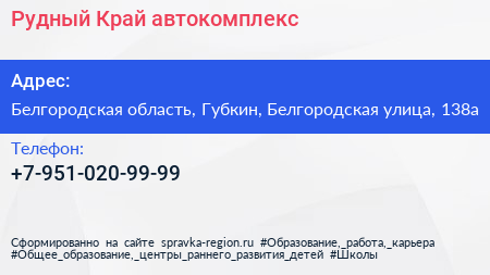 Рудный Край, автокомплекс по адресу Белгородская область, Губкин, Белгородская улица, 138а в дальнейшем Организация, размещена в следующих категориях: