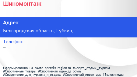 Шиномонтаж по адресу Белгородская область, Губкин, в дальнейшем Организация, размещена в следующих категориях: